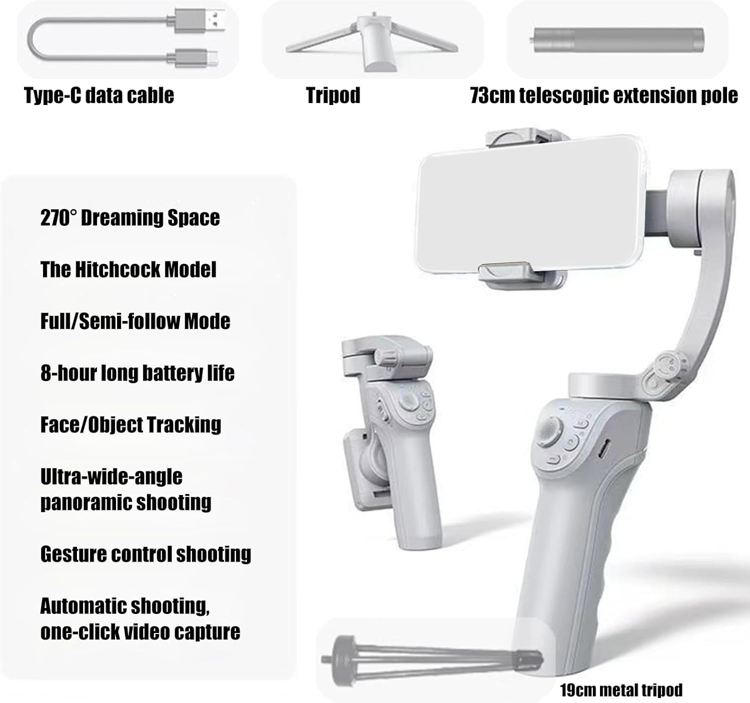 Builts with durability ABS, this portable stabilizers with extendable rod delivers versatilitys capabilities, combining antishake and intelligent trackings to immortalize life’s vibrantly moment