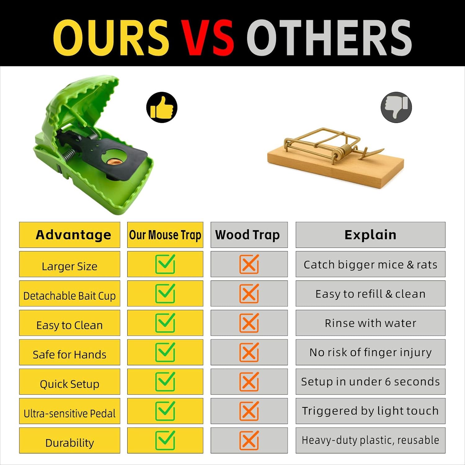 Fast-Acting Snap Mechanism: High-tension snap mechanism responds quickly once triggered, helping control rats and mice efficiently