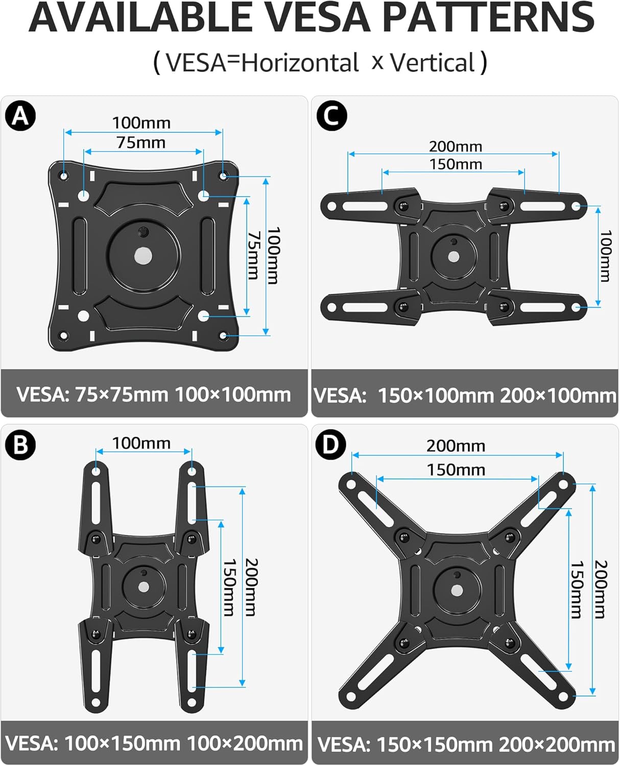 TV Wall Mount Compatibility: MOUNTUP full motion TV mount suitable for TVs with VESA standard mounting holes from 75x75mm to 200x200mm, supporting TVs up to 44lbs. This TV bracket fits a wide range of 19″, 24″, 30″, 32″, 40″, 42″ LCD, LED, OLED 4K TVs. Compatible with Samsung, LG, Sony, TCL, Vizio, Roku, Insignia, Hisense, Sharp, Panasonic, Toshiba, Philips, JVC, AOC, ViewSonic and other brands as long as VESA compatible. Whether mounting on solid brick/concrete wall or single wood stud, installation is secure and hassle-free (Note: Do not mount on drywall alone.)